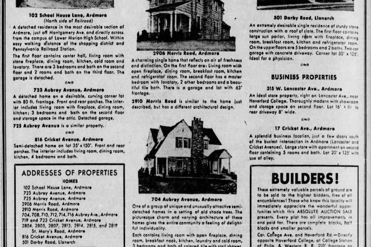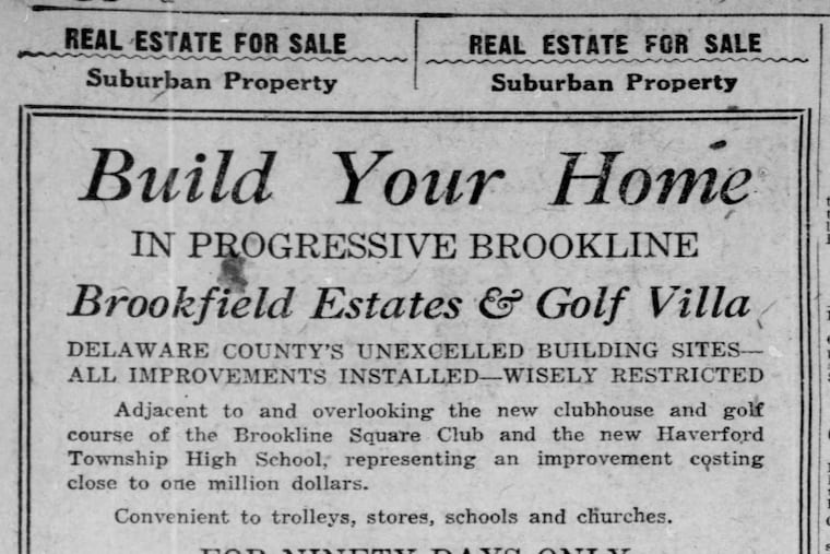 A 1926 ad for Elkins Park — “A Suburb You Will Be Proud To Live In” — promised homes in a locale that is “Wisely Restricted,” and where values were sure to increase. A year earlier, a Bala Cynwyd development advertised its “exclusive and highly restricted” nature.