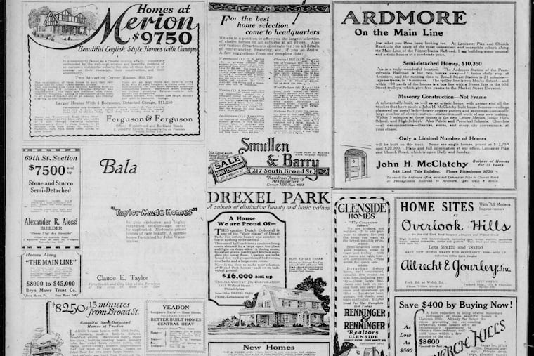 As pre-Depression suburbanization boomed, The Inquirer advertised leafy new housing developments tailored to a specific set of new residents. A 1925 ad for Glenside Gardens promoted a “Beneficially Restricted” project at “The Highest Point In Abington Township.”
