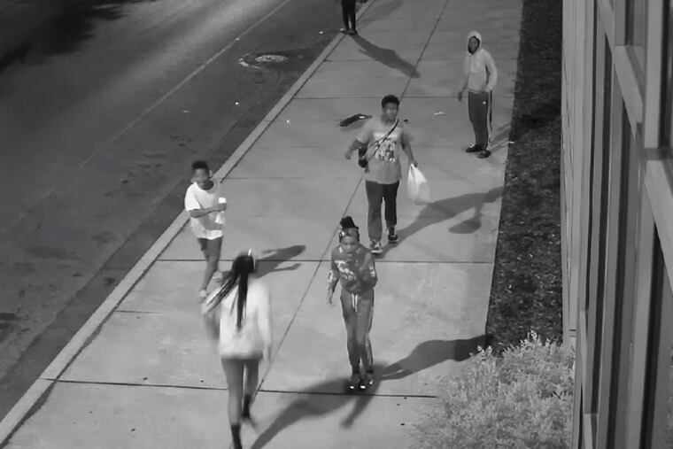 Just before 2:30 a.m., as Lambert tried to leave the park area and cross Cecil B. Moore Avenue near 21st Street, surveillance video showed Jones and two others — his 10-year-old brother and Mosley — running after him. Jones takes the traffic cone from Mosley and throws it at Lambert.
