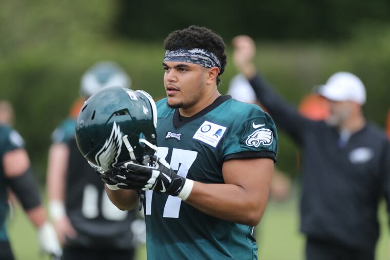Dillard, listed at 6-5, 315, was a 240-pound high school prospect who didn’t start to think about the NFL until his second year at Washington State, after he’d added about 50 pounds. He savored signing his contract Thursday and walking out onto the practice fields Friday, wearing Michael Bennett’s old No. 77, a couple of weeks after the Eagles moved up in the first round from 25th to 22nd overall to draft him.