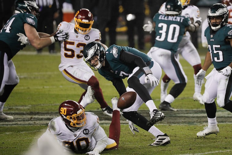 For those who contend that the Eagles stood little chance to win given Hurts’ struggles, understand this: If Pederson had converted the field goal in the third quarter, the score would have been tied. That means the Eagles could have been within three points late in the fourth quarter when Alex Smith fumbled at the Washington 36. If Rudy Ford had fallen on the ball rather than trying to scoop and score, the Birds would have been in business trailing, 20-17.