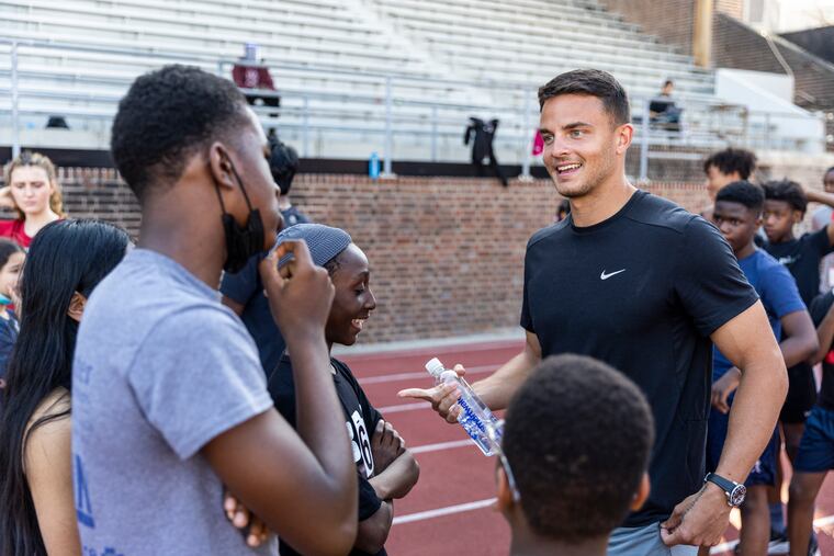 “The last eight weeks, I’ve been mostly focused on getting back into track shape and sprinting, but starting Monday, I’ll be back in Philly for [football] offseason training,” he said. “I think I can handle it. I did pretty well last year and still competed well and ran fast.”