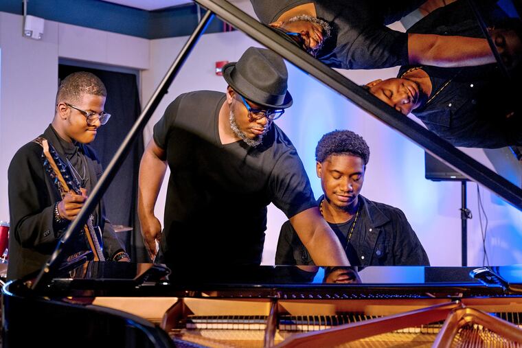 On Saturday night at the Clef Club, the ensemble will get the chance to showcase what they’re learned as they open for Tidd as part of the institution’s Jazz Cultural Voices series. From a larger class Tidd and WRTI DJ J. Michael Harrison selected pianist Justin Griggs, 18; bassist, singer, and dancer Ahyashah Wimberly, 17; guitarist Andre Harris and his twin brother drummer/percussionist Andrew Harris, 16; trombonist Henry Koban Payne, 14; and drummer/percussionist Shadrach Carter, 14, who was not present for Monday’s rehearsal. The band has been dubbed DSOP, a reference to the classic MFSB hit “TSOP (The Sound of Philadelphia)” as well as Harrison’s penchant for onion pizza (the name stands for “Don’t Sleep on the Onion Pizza.”)