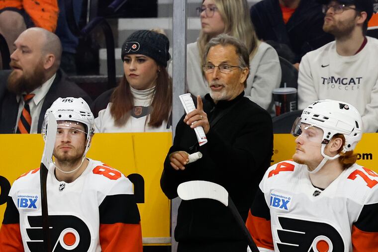 A: John Tortorella has been forthcoming with saying his guys are tired, without using the five-letter word, and it’s a fair assessment. He mentioned again Monday that the plan was never to start goaltender Sam Ersson for as many games as he has. Tortorella said after the loss to the Chicago Blackhawks that Travis Sanheim and Cam York “are on fumes.” And York said the next day, “Everybody’s pretty tired this time of year.” That’s fair, too, as the 82-game season is a grind. But it was the second part of that answer that made me think. “It’s more mental than physical,” York continued. Could it be more the mental gymnastics — that no one expected the team to be in the playoff mix, the streaks, losing Carter Hart, Sean Couturier being named captain and then being benched?