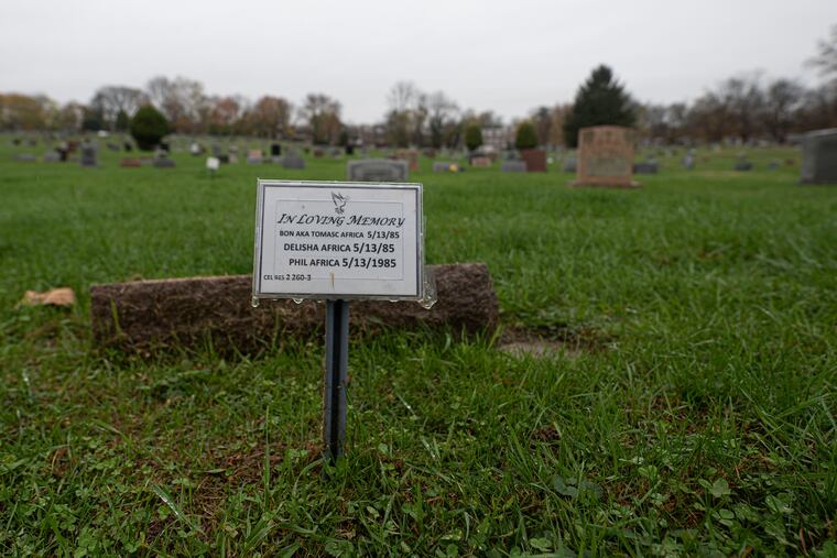The children’s grave sat unmarked for years. Gerald Ford Africa, the owner of Phil, Tomaso, and Delisha’s plot, could have given permission for a grave marker, according to cemetery officials. But he died in about 2017, Janine Africa said.