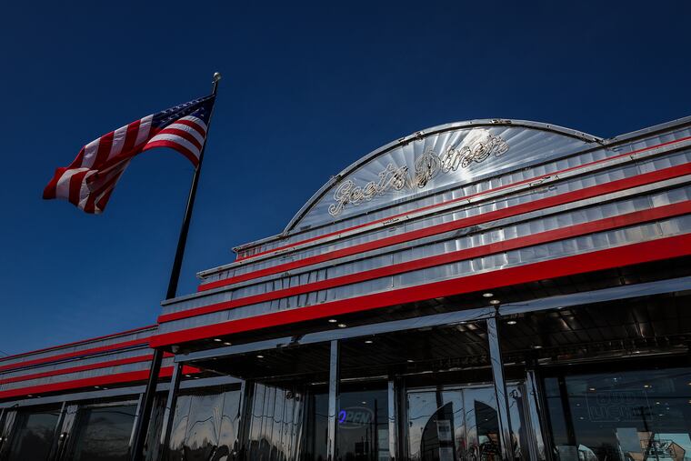 The diner is sided in shiny, silver metal highlighted by red stripes. A large American flag waves over it, near a towering, old-timey Geets sign from who-knows-when, according to Cannon. Inside the huge lobby, 11 chairs and a 15-foot-long couch indicate that the place gets big crowds of customers, many of whom are apparently willing to wait for what people say are over-portioned meals at underwhelming prices.