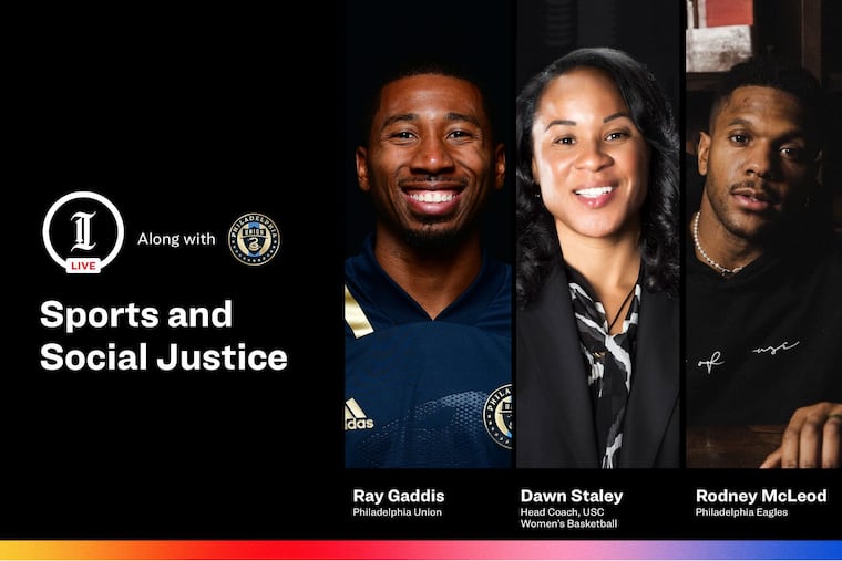 Join us for a roundtable discussion with the Philadelphia Union’s Ray Gaddis, Philadelphia Eagles safety Rodney McLeod, and Philly native and University of South Carolina women’s basketball coach Dawn Staley. Moderated by The Inquirer’s Shemar Woods, they’ll tackle topics like racial equality, social justice, and what progress has been made across the leagues.