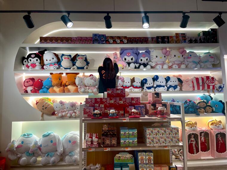 On the ground floor, you’ll find plush toys and figurines stacked on shelves, and neon-glowing coin claw machines with toys and candy up for grabs.