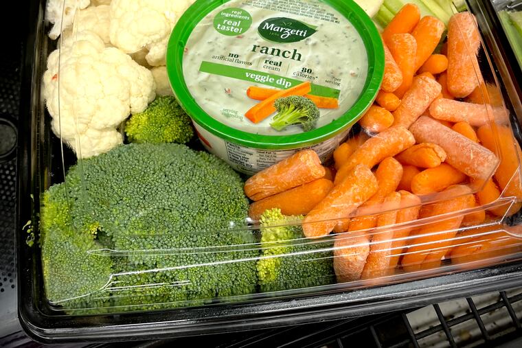What’s the real cost of a veggie tray, by the way? A small one from Redner’s retails for $22.99 and feeds 10 to 15 people. Wegmans’ site offers a large veggie tray with ranch dip for $18. And at the Passyunk Acme on Tuesday evening, the trays were selling for $12.99 a pop. There was only one left.