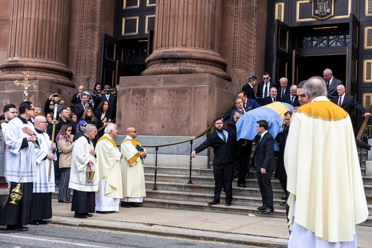 After the funeral Mass was over, spontaneous applause broke out in the cathedral. Outside, there was a send-off fit for a Geator: As hundreds of people watched, an honor guard removed the Philadelphia city flag draped over Blavat’s coffin and presented it to Keely Stahl, his partner of 30 years.