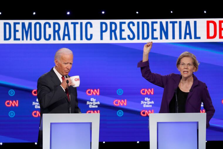 On the debate stage Tuesday night, he frequently faded to the background as his Democratic rivals turned their attention to Sen. Elizabeth Warren, a clear sign of her new stature at the top of the field. Mayor Pete Buttigieg and Sen. Amy Klobuchar spent the night shouldering into his center-left political lane, arguing for the kind of pragmatism that had been his calling card.