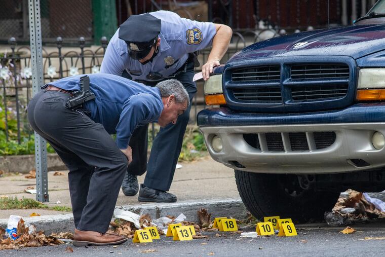 The victims were struck when three people hopped out of a gold or tan SUV at 38th and Aspen Streets at 10:57 a.m. and began firing, Chief Inspector Frank Vanore said. The shooting caused a temporary lockdown of the nearby Morton McMichael School.
