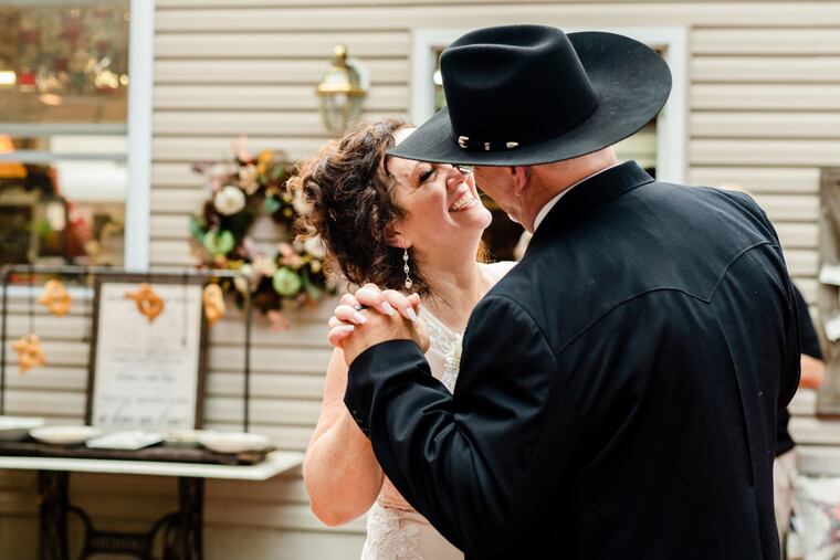 The couple did not have music or dancing at their first wedding, so it was a priority at this one. They had two first-dance songs — his to her was “I Cross My Heart” by George Strait. Hers to him was “I Could Not Ask for More” by Sara Evans. “When we were dancing, it was like no one was there but him and I,” Faith said.