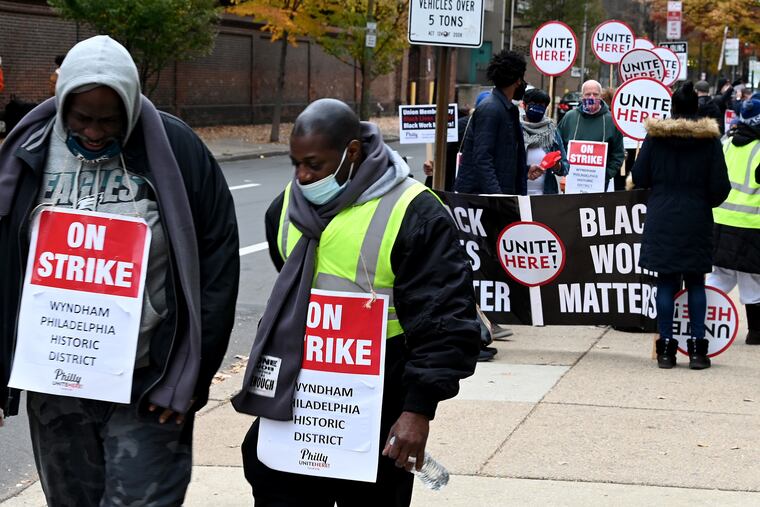 Members of Unite Here Local 274 working as housekeepers, cooks, laundry attendants and lobby staff at the Wyndham Philadelphia Historic District Hotel began the strike early Sunday morning.