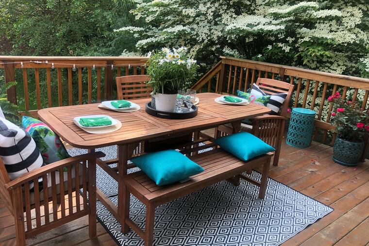 Your porch is an extension of your living room, says Jaimi Blackburn, a Villanova-based certified interior decorator. “It’s the first thing that people see, so you want it to be welcoming and reflect your style.” So, Blackburn said, give it some color. “Pick a color that makes you happy,” she said. “I love pink and have pink flowers on my porch with all pink accents.”