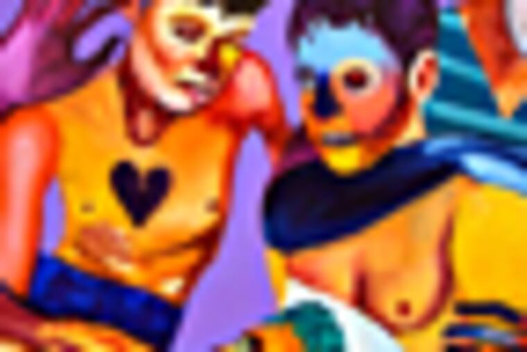 Things have changed since 1961, when Jasper Johns made his Painting Bitten by a Man, an encaustic painting out of which he actually took a chomp, thereby embedding it with a vague eroticism (that Johns, a quiet gay man, kept the painting in his personal collection for many years before giving it to MoMA only added to its mystique). Now, a few decades down the road, another "Painting Bitten by a Man" — this time an exhibition at Vox Populi titled after the Johns painting — brings together the efforts of two artists, Brian Kokoska and Jonathan VanDyke, who seem happy to let their queer sensibilities permeate every aspect of their art.