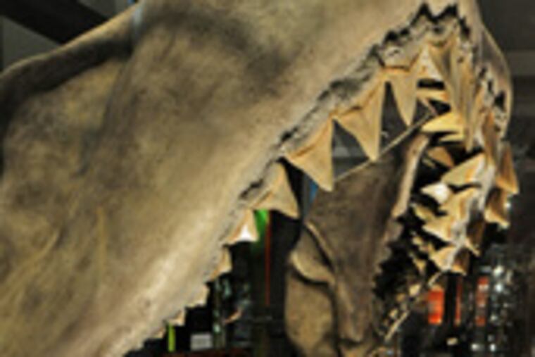 You'll come across the skull of Dunkleosteus, jawbones sharpened like teeth. This is a creature that doesn't appear safe to approach even though it's been dead for more than 350 million years. A few feet away gapes the maw of Carcharodon, the giant great whale shark, a term that doesn't seem so redundant when you see it in person.