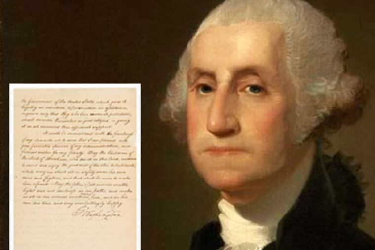 The document in question, which has been out of the public eye for a decade, is a letter written by President George Washington in August 1790 to the Hebrew Congregation of Newport, R.I. The nation's first president was responding to a letter from Moses Seixas, warden of the congregation, written on behalf of Newport's Jews after the first presidential visit to the state.