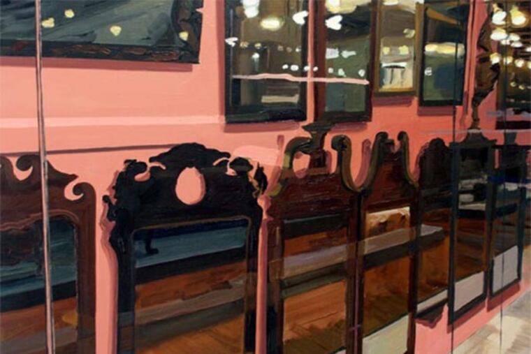 Artists Timothy Belknap and Ryan McCartney have curated a second show in Crane Arts' Icebox space (the first was "Refuse Reuse: Language for the Common Landfill") that takes up less space than any show I've ever seen here. For this new effort, "Winter Down," a five-person show, Belknap and McCartney have constructed a 10-by-10-by-10-foot gallery in the middle of the immense Icebox space that can be entered only by crossing a suspended wooden bridge.