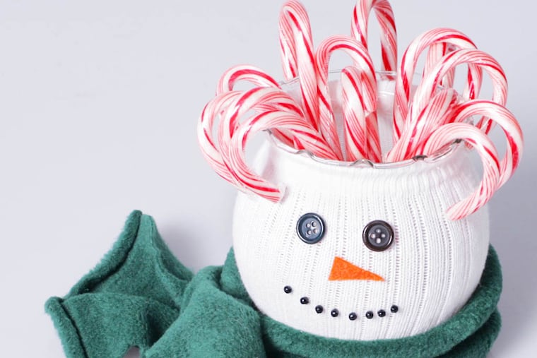 It is quick, inexpensive and easy to make. That makes this little Frosty Snowbowl candy-cane holder all the more appealing in the rush to get everything done before next week.