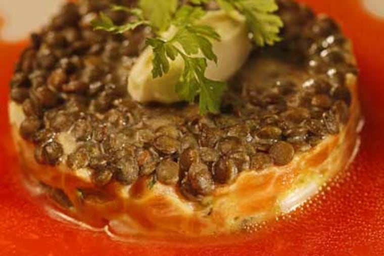 There were numerous other highlights. The elegant salmon tartare brought a pedestal of contrasts - the soft mince of fish layered beneath a crown of firm lentils - over a juicy aurora of blood-orange vinaigrette. The grilled sardines, set into silver-skinned stripes between sweet roasted peppers beneath a lemon vinaigrette, embodied the fresh (yet not fishy) taste of the Mediterranean coast.