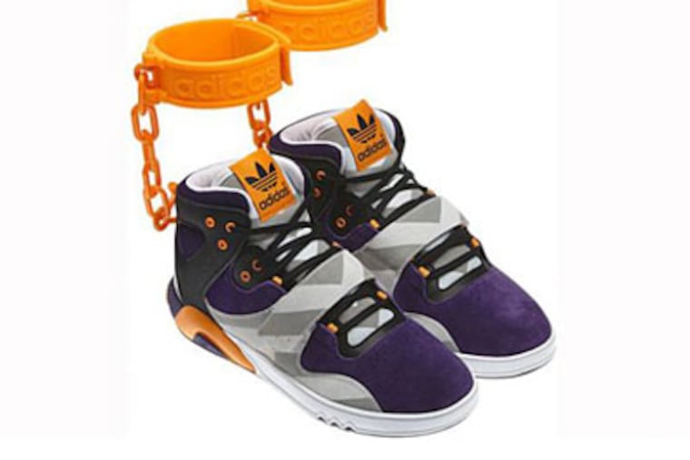 Putting shackles on a pair of sneakers — no matter how fly they are — is not a good look. Let alone a good idea. That's the moral of the story for Adidas, the German sportswear manufacturer that introduced this very shoe to the public and unwittingly unleashed a stampede of criticism in an Internet minute.