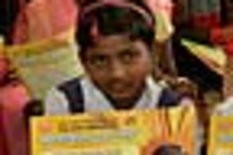 The 285 girls - wearing their best outfits with barrettes, braids, and bows in their hair - lined up to receive certificates with their new names along with small flower bouquets from Satara district officials in Maharashtra state.