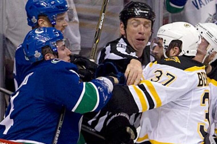 In the television replay that seemingly played on an infinite loop in Vancouver's bars and restaurants Wednesday night, Bergeron's gloved right index finger sure appeared to go into Burrows' mouth. Bergeron claimed Burrows then bit down on him, but Burrows denied it.