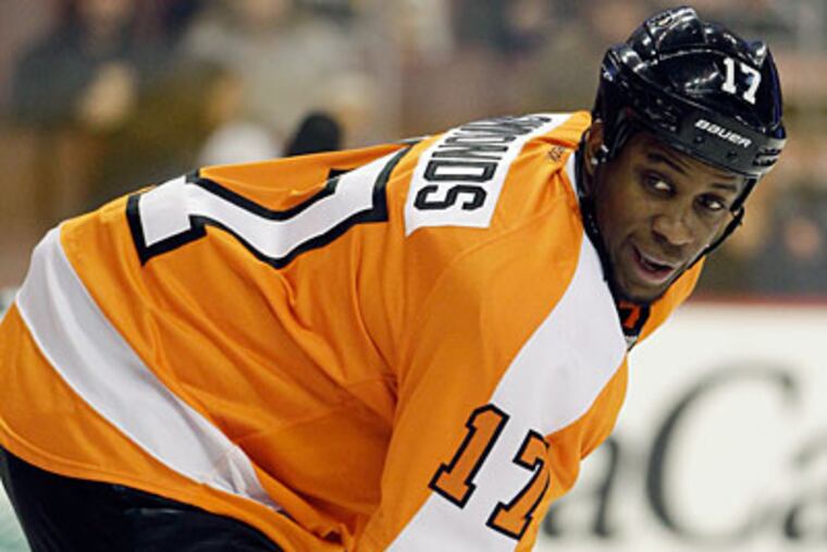 Flyers forward Wayne Simmonds during an exhibition game in London, Ontario, was fined $200, according to the Globe and Mail.