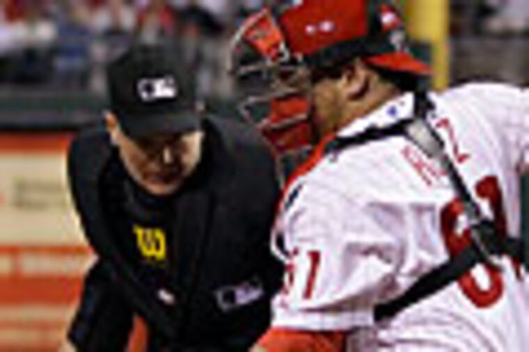 It's also true, though, that umpires strive not to be noticed. And by that measurement, plate umpire Jerry Meals didn't have a very good evening during Game 2 of the National League Division Series played last night at Citizens Bank Park.