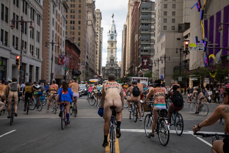 Cyclists participate in Philadelphia's Naked Bike Ride at FDR Park by painting up, decorating and getting naked on Saturday afternoon.