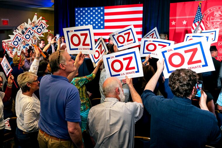 Oz defeated fellow Republican David McCormick by 951 votes in the May primary election to fill the U.S. Senate seat being vacated by Pat Toomey. His Democratic opponent in November's election, Lt. Gov. John Fetterman, suffered a stroke May 13 and might not return to campaigning until July.