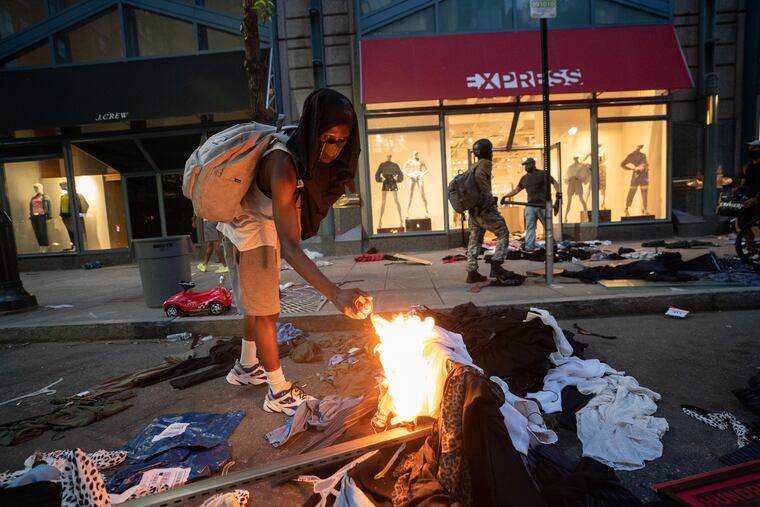 People gathered in Philadelphia to mourn the death of George Floyd and protest against police brutality on Saturday, May 30, 2020. Floyd died after Minneapolis police officer Derek Chauvin knelt on his neck for more than eight minutes and two other officers restrained him, allegedly causing his death and sparking nationwide protests against police brutality.