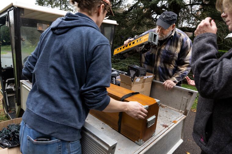 It's a family affair at the Holiday Garden Railway at Morris Arboretum in Chestnut Hill. Trainmasters Josh Faia and his grandfather Bruce Morrell bring the scene to life. The railway features 11 trains on continuous tracks and 5 trolleys. The decorated buildings, which include prominent Philadelphia landmarks, are made of natural materials.