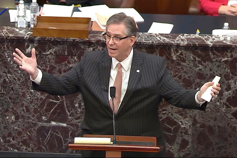 Under the biggest spotlight of his career, Bruce L. Castor Jr. stood in the well of the U.S. Senate and delivered the opening salvo of his defense in the impeachment trial of President Donald Trump.