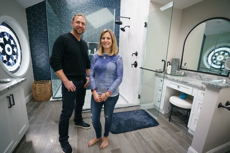“The huge tub wasn’t functional and was taking up so much space,” recalled Greenfield, who lives in Plymouth Meeting. “It had a really small shower, bad lighting and very little storage space.”