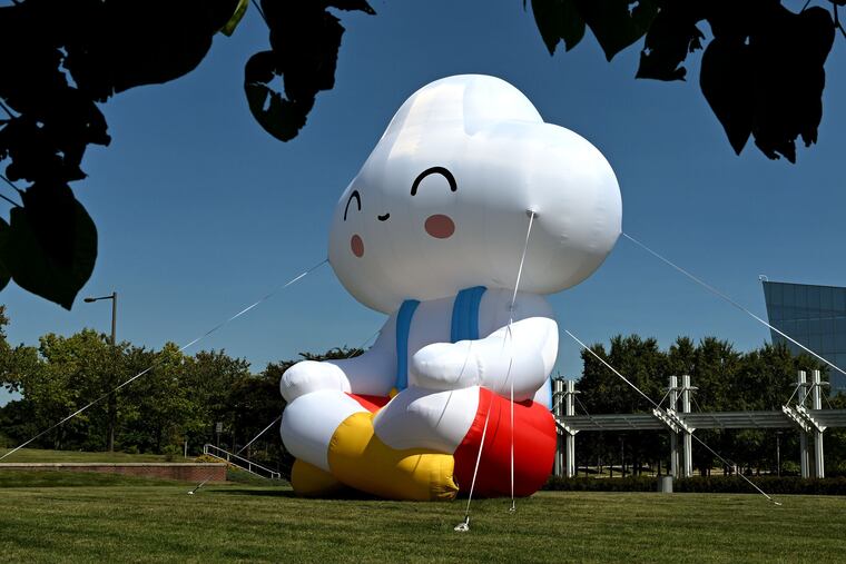 “Seated Little Cloud,” an inflatable art installation, greets visits to the South Philly complex with an air of tranquility.