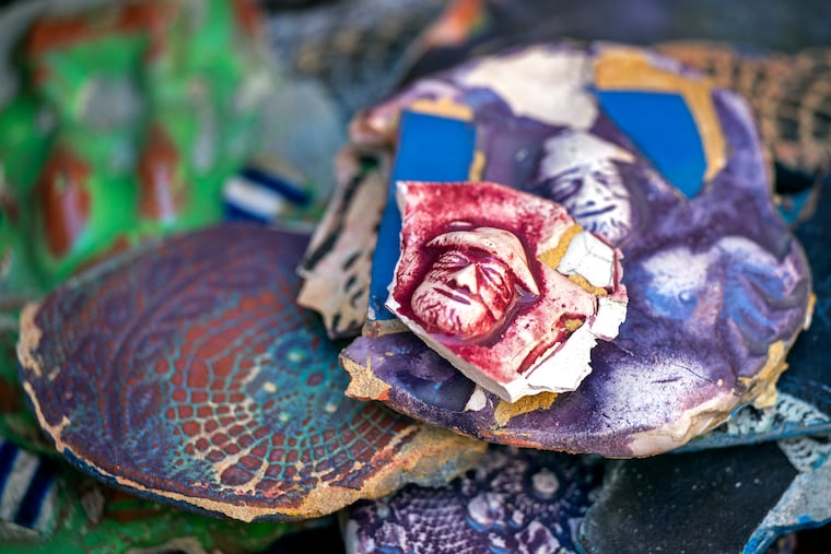 Perhaps the prototypical example of that dream was the Painted Bride Art Center, which once was home to Mr. Zagar’s Skin of the Bride — a massive, 7,000-square-foot mosaic work that came to envelop the exterior of the building. Demolition of the Painted Bride began in December after a lengthy legal battle, but members of the Magic Gardens Preservation Team had been able to remove about 30% of the tiles for reuse in new mosaics in 2023.