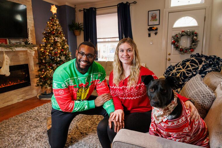 In Fishtown, Angie Bui, 31, said her 3-year-old Aussie doodle, Catfish, brings extra holiday joy to her entire extended family, who love to put Santa hats on him and shower him with gifts. Bui’s father has even been known to wear matching sweaters with Catfish.
