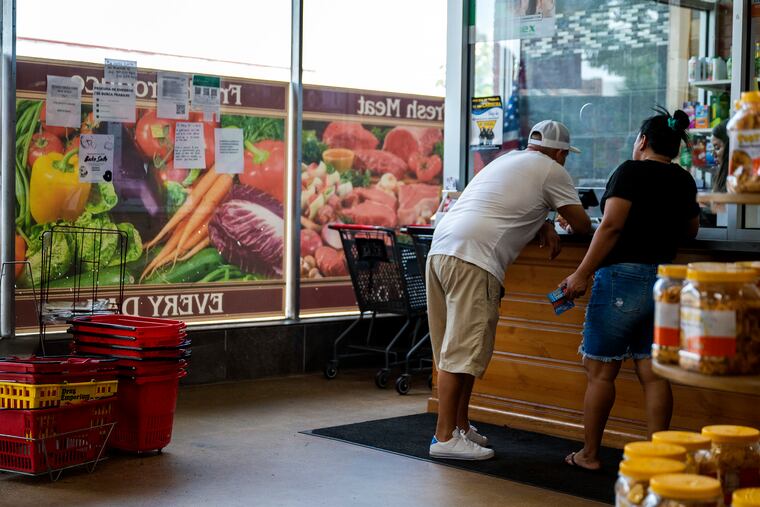 Consumers at the counter at the Meat Shoppers Supermarket in Riverside, N.J., last month. Wednesday's Consumer Price Index report provided promising signs that inflation is cooling, but Temple professor Wayne W. Williams said, "It doesn't mean spend more."