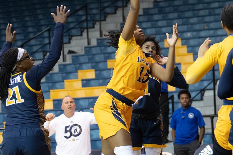Within 36 seconds of each other in the third quarter, Washington got into foul trouble and La Salle’s Molly Masciantonio fell to the court, holding her wrapped right calf. Both players left the floor, leaving room for others to step up and for one team to capitalize in the final quarter.