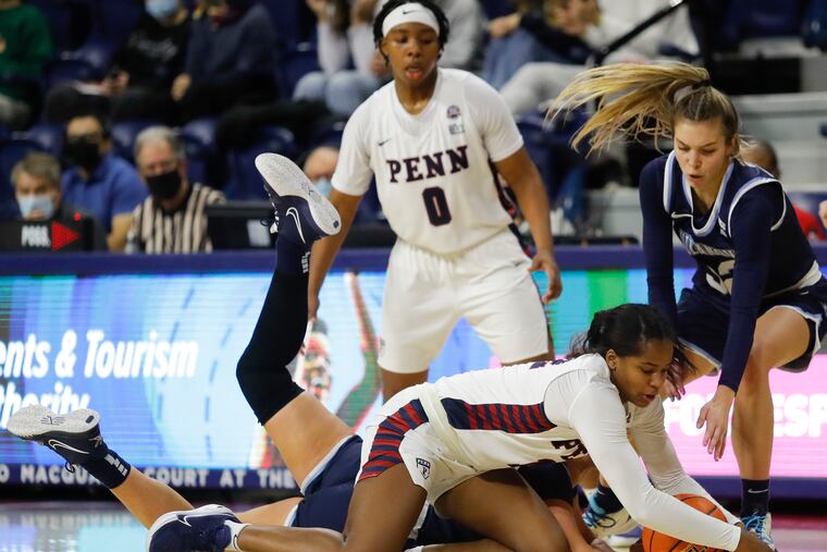 The Quakers’ first loss of the season came in the absence of senior forward Kennedy Suttle and junior guard Kayla Padilla, Penn’s two returning starters from the 2019-20 season. With both serving their suspensions on the sideline, Obi and her fellow underclassmen have stepped up in their place. Freshman guard Lizzy Groetsch also had a standout performance against the Wildcats, setting career-highs in points (10) and steals (four).