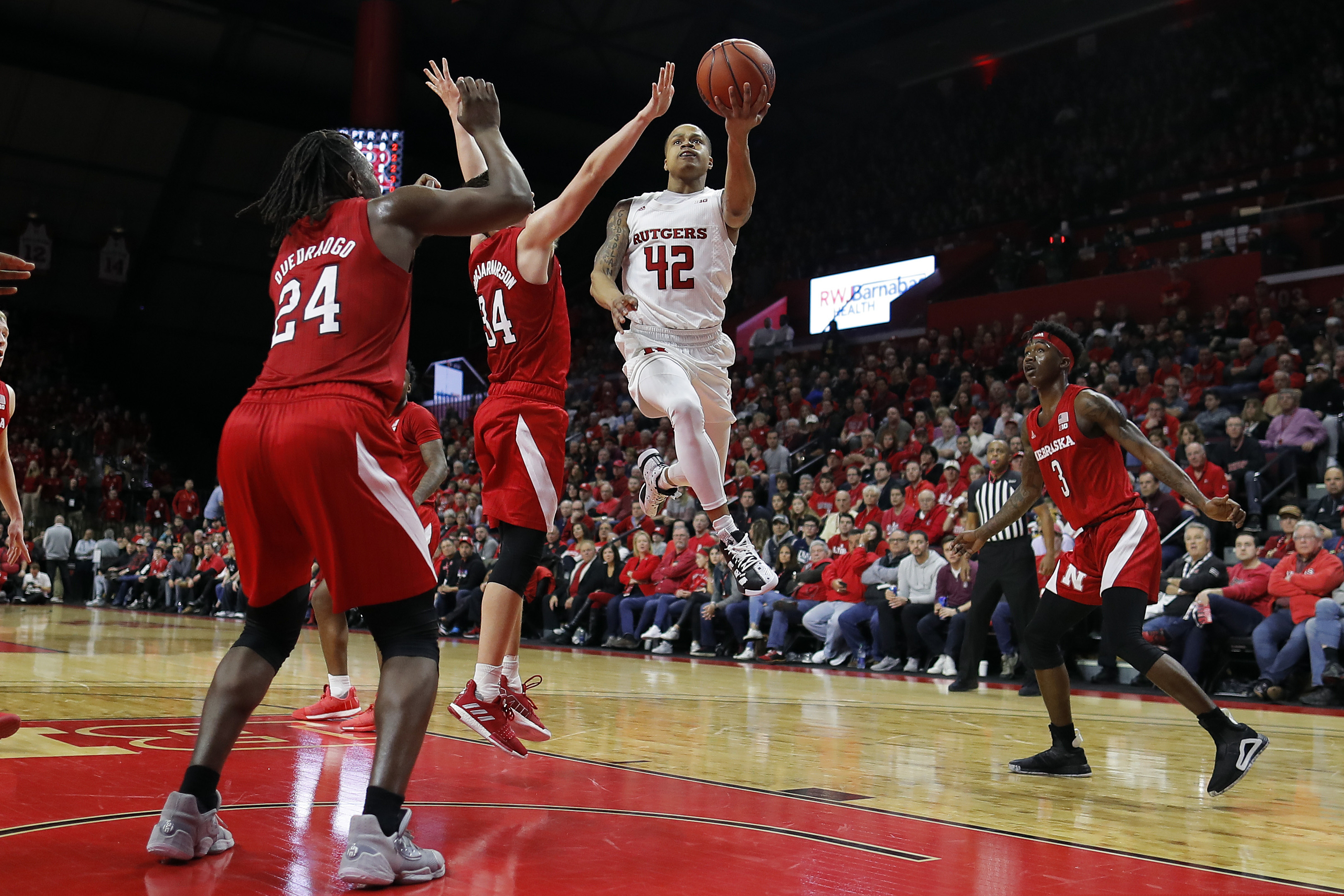 PISCATAWAY, N.J. -- Were they ready for this? A lead had gotten away from Rutgers. Maybe the school’s first home game as a nationally-ranked team since 1979 was too much? When Rutgers coach Steve Pikiell waved his arms, his building got loud. Didn’t matter. A Nebraska shooter hit a three, gave the students a salute. Rutgers was on the ropes, down five, just over 4 minutes left.