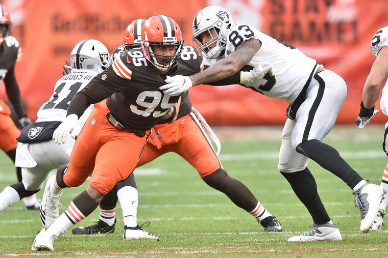Garrett, who turns 25 next month, was drafted first overall in 2017. He leads the NFL with 9.5 sacks. The Browns play him mostly on the left side, where he would have been facing sore-ankled Lane Johnson, but in some passing situations they move him to the right, which would have meant a matchup with 38-year-old Jason Peters.