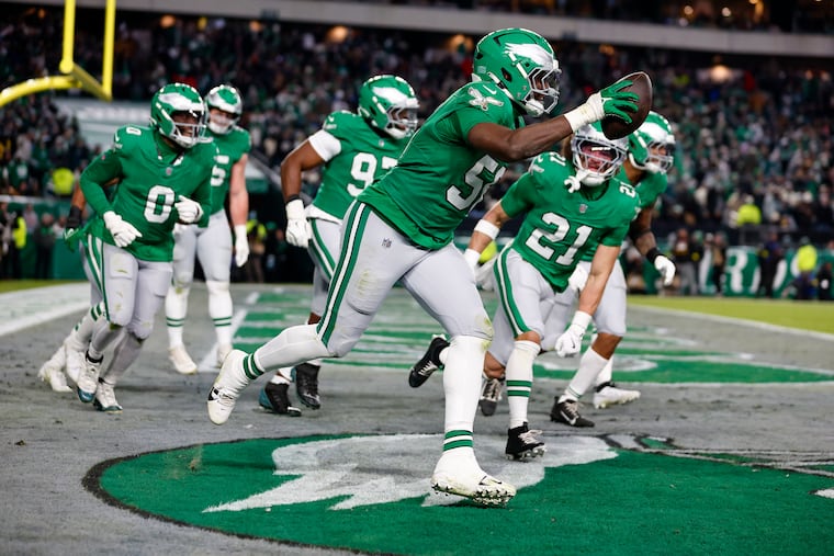 Zack Baun was a healthy scratch. Nakobe Dean (hamstring) was not and was inactive. Jihaad Campbell started alongside Jeremiah Trotter Jr. The former made several plays, but the latter was all over the field. Trotter led the Eagles with 12 tackles and Campbell had 10.
