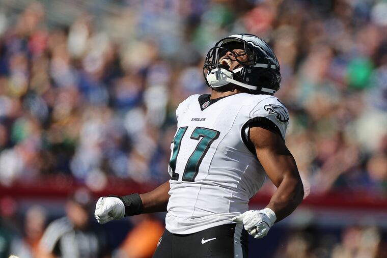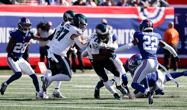The Eagles had a field day against backup left tackle Joshua Ezeudu. The pass rush racked up eightsacks on Daniel Jones and Drew Lock combined, including two for Jalen Carter, who is tied for the team high with three on the year.
