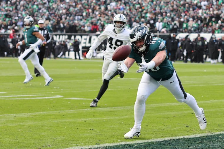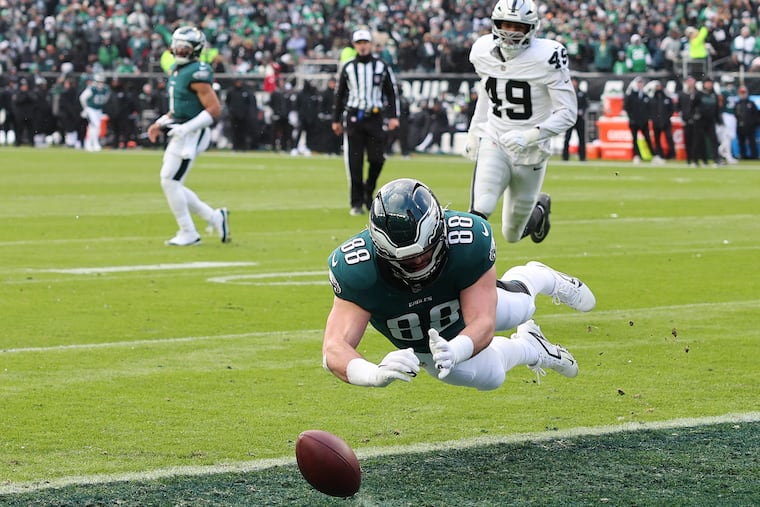 Goedert caught a 32-yard pass in the third quarter when two Raiders defenders inexplicably covered second tight end Grant Calcaterra.