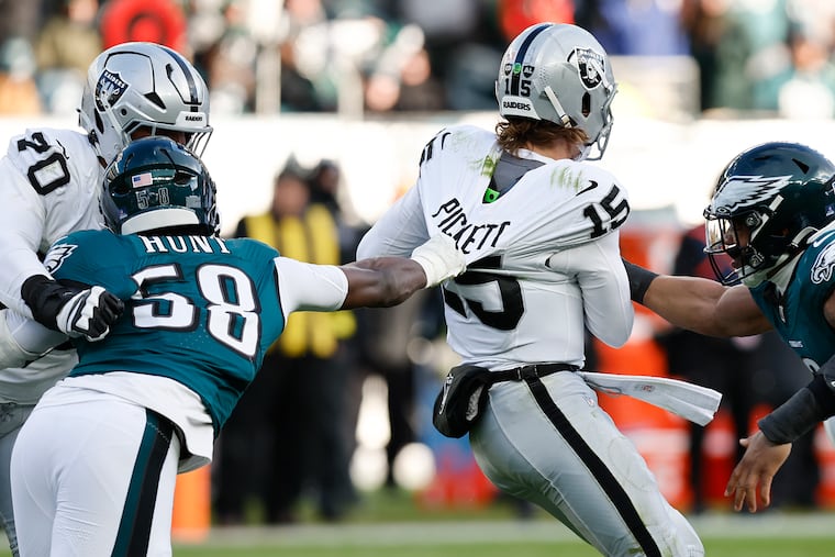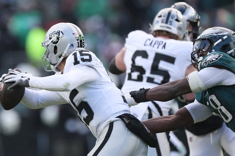 Quarterback Kenny Pickett walked into a buzz saw in his first start for the Raiders. He was sacked four times and forced into checkdowns and tight window throws all game. The Eagles front, meanwhile, led a defense that mostly bottled up running back Ashton Jeanty.