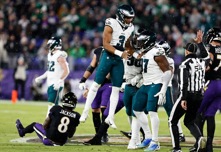 The pass rush Lamar Jackson can be a hard quarterback to sack, but the Eagles got to him three different times. Nolan Smith picked up one of them, Jalen Carter wrecked the game inside and got to Jackson, and Baun and Jalyx Hunt teamed up for another.