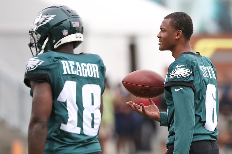 Moments after Eagles wide receiver Jalen Reagor failed to haul in a pass from quarterback Jalen Hurts during the early portion of Wednesday’s training camp practice, coach Nick Sirianni jumped in front of Reagor and barked out instructions.